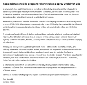 A ještě jedna dobrá zpráva od východních sousedů. Úvaly dokončují výkup pozemků pod komunikacemi a schválily postup jejich oprav: