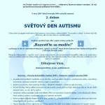 Od 2. dubna až do konce měsíce je možné připojit se k osvětové kampani „Rozsviťte se modře“ jako výraz podpory lidem s Poruchami autistického spektra ( obecně „autismem“) a jejich blízkým. Pilotní projekt v Čechách pořádá uskupení Naděje pro autismus v rámci celosvětové kampaně „Light It Up Blue“. Proč zrovna modře? Protože modrá symbolizuje komunikaci, jejíž porucha je jedním z nejzávažnějších příznaků autismu. Během dubna budou na různých místech po republice probíhat osvětové kampaně, výstavy a jiné programy, které pomohou přiblížit svět člověka trpícího autismem, který: „.. nerozumí svému okolí, nechápe časoprostorové vztahy, nerozumí emocím druhých a trpí tzv. sociální dyslexií. Protože se nedokáže vcítit do druhých, nechápe ani, jak a proč s ostatními komunikovat. Selhává v představivosti, plánování činností, imitaci a hře, sebepojetí…Takový člověk prožívá mnoho úzkostí, které bez odborné pomoci nedokáže překonat.“ (Mgr. Romana Straussová na programu ze Zlína – http://www.hokej.zlin.cz/)