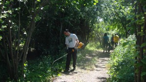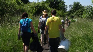 Spolek Újezdský STROM zorganizoval a do programu prvního Týdne udržitelnosti v ČR zaregistroval dobrovolnickou akci “ Úklid černé skládky a opékání buřtů“ na tzv. Jižní spojce, což je obnovená pěší cesta s vysazenou ovocnou alejí na jihu Újezda. Obnovená cesta vede po pozemcích MČ P21 a je grantovým projektem Újezdského STROMu, na který, se souhlasem MČ P21, spolek získal dotaci Hl. m. Prahy se spoluúčastí firmy DHL. Po turbulentních změnách „od registrace k realizaci“ se nakonec v sobotu 6.6.2015 konala akce, jejíž náplní bylo “ Sekání a úklid grantové cesty Jižní spojka“. A místo buřtů byly k obědu obložené chleby se zeleninou :-) Proč?