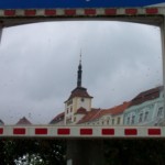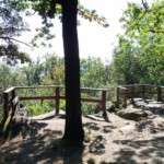 V podstatě po vrstevnici jsme dojeli pod Zbořený Kostelec, což je zřícenina hradu s výhledem na řeku Sázavu a na Týnec. Tento výhled se ovšem naskytne, jen když na stromech není listí. Prohlídky jsme se vzdali a po pár kilometrech jsme po silnici č. 107 dojeli na okraj Týnce nad Sázavou (270 m. n. m.) na odbočku na modrou turistickou. Tou jsme vyfuněli až k vyhlídce Panská Skála (470 m), kde jsme dali delší pauzu na doplnění tekutin vypocených při překonání dvousetmetrového výškového rozdílu. Bylo pod mrakem, nepršelo, bylo vlhko, teplo. Celkový pocit z počasí byla „prádelna“.