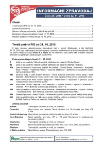 Další aktuální informace z pražské MHD najdete v nejnovějším Informačním zpravodaji PID č. 20/2015 ze dne 2.11.2015.