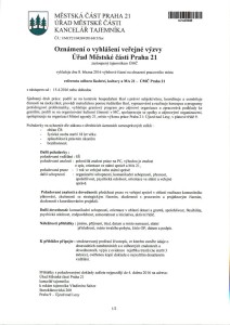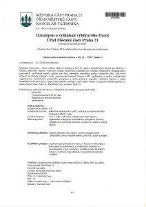 Úřad Městské části Praha 21 zastoupený tajemníkem ÚMČ vyhlašuje dne 3. března 2016 veřejnou výzvu na obsazení místa: