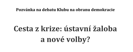 Pozvání spolku Klub na obranu demokracie na debatu „Cesta z ústavní krize: ústavní žaloba a nové volby“ ve středu 25.9.2019
