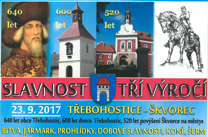 Pozvání na škvoreckou sobotu 23.9.2017. Slavnost tří výročí Škvorce a Třebohostic