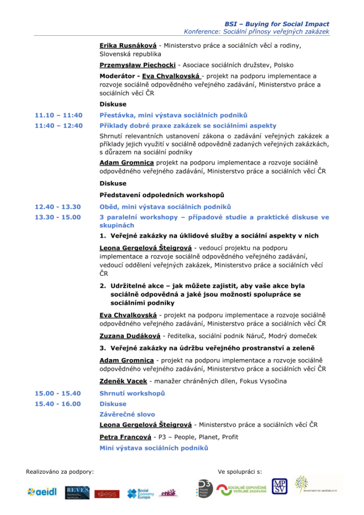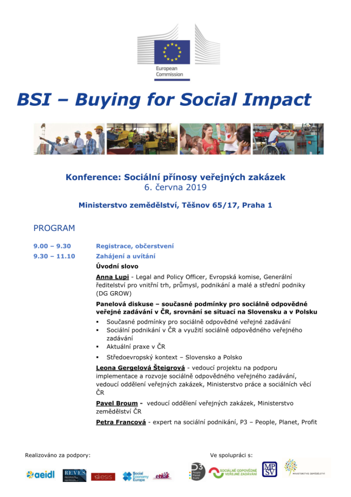 Za účelem podpory využívání sociálních hledisek při zadávání veřejných zakázek zahájila Výkonná agentura pro malé a střední podniky (EASME) a Generální ředitelství Evropské komise pro vnitřní trh, průmysl, podnikání a malé a střední podniky (GŘ GROW) iniciativu s cílem posílit znalosti v dané oblasti v 15 zemích EU a svěřila její provádění pěti evropským organizacím, které jsou aktivní v podpoře místního rozvoje a sociální ekonomiky. Konference v České republice je organizována ve spolupráci s Ministerstvem práce a sociálních věcí a s Ministerstvem zemědělství.