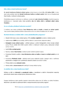 Více informací o konferenci naleznete na http://www.mvcr.cz/clanek/konference-moderni-verejna-sprava-2018.aspx, kde je umístěn také elektronický registrační formulář.