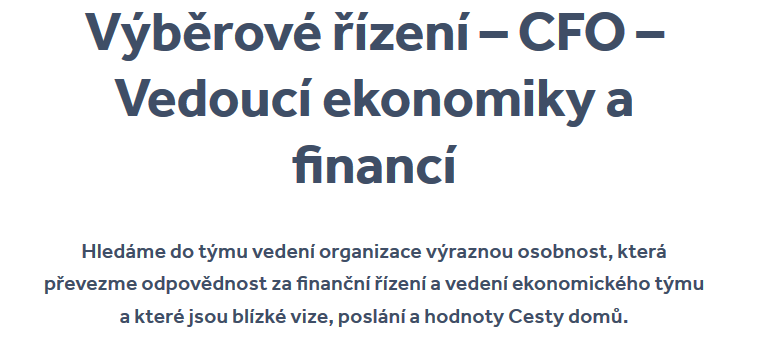Přečtu sihttps://www.cestadomu.cz/aktuality/vyberove-rizeni-cfo-vedouci-ekonomiky-a-financi https://www.cestadomu.cz/