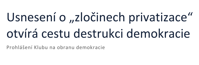 NÁZOR, OBRAZEM, ZVUKEM, Politika, TÉMA27.6.2019NÁZOR: Klub na obranu demokracie – Usnesení o „zločinech privatizace“ otvírá cestu destrukci demokrcie