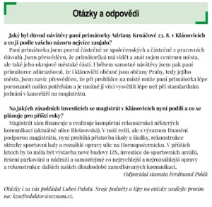 Ze zářijového KZ dále přebíráme informace o návštěvě primátorky v Klánovicích: