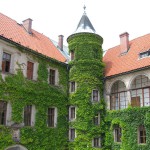 Pak jsme nádhernou lesní cestou uháněli kolem bílých skal na zámek Hrubá Skála,  kde na nádvoří plném turistů panovala typická dovolenková nálada.