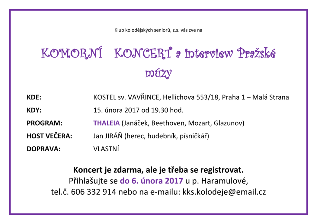 Dvě kulturní pozvánky od Klubu kolodějských seniorů. Výroční schůze je ve středu 15.2.2017