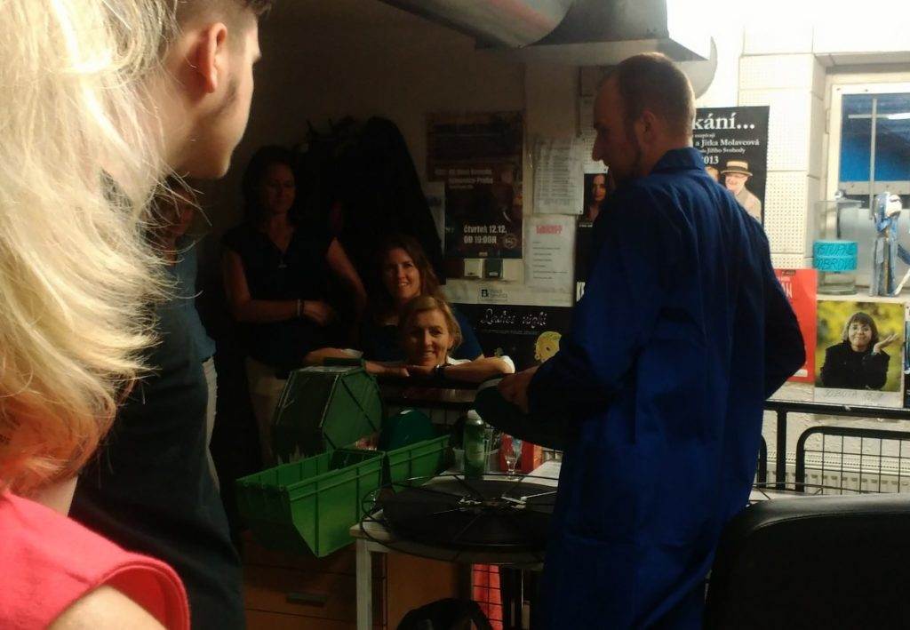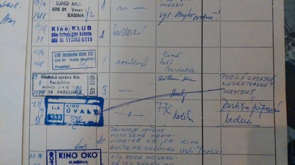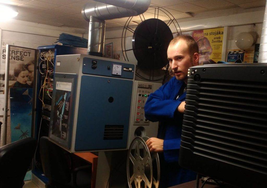 Promítání v Besedě bylo ozvláštněno přestávkou na přepnutí filmového kotouče 35mm kinofilmu, v níž jsme byli pozváni do promítačovy kabiny a vrátili se do časů, které dnes najdeme jen v Ponrepu. Klasická promítačka, kotouče filmu, slepovačka v pohotovosti, horko jak u pece, obdiv a poděkování panu promítači Tomáši Petříkovi.