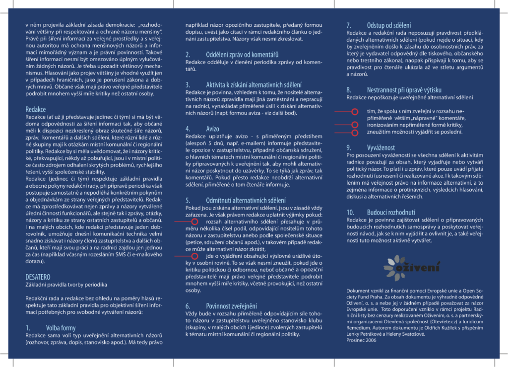 –   náplň: tvoří základní pravidla periodika (viz „DESATERO“ a kontroluje jejich plnění)