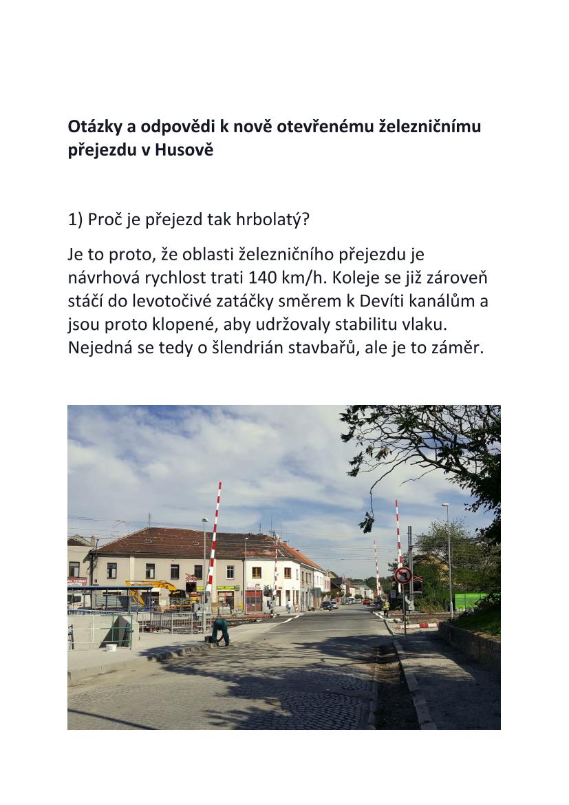 a na otázky k zrekonstruovanému železničnímu přejezdu v Husově ulici odpovídá obecní web: