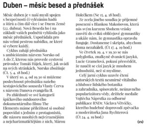 KC Nová Beseda v Klánovickém zpravodaji 4/2018: jak se slavily narozeniny a pozvánky na duben 2018