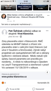 Níže je výzva Magistrátu ze dne 2.5.2019 k připomínkování tzv. parkovacích zón po celém hlavním městě. Klánovice Výzvu evidentně mají od 9.5.2019 a mají zajištěnou i odbornou oponentru. A co má Újezd? Má Samce s Růžičkou…