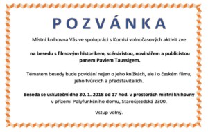 Zdroj: ÚZ 1/2018, celé číslo ke stažení 2018_01_ujezdsky_zpravodaj Zita KazdováMUDr. Zita Kazdová dobrovolnice v neziskovém sektoru, původní povolání stomatolog Přemýšlejme globálně, čiňme se lokálně – naše okolí i svět zázračně prokouknou! Újezd nad Lesy Související příspěvkyTrollové za ANO v Radě ČT aneb „máš něco na protahování?“8.6.2020Pozvání na kulturní program s agenturou JABATO v prosinci 20216.12.2021Bitva o obnovu evropské přírody: těsné vítězství s mnoha ztrátami20.7.2023 Předchozí příspěvekVolba prezidenta ČR: volební manuál Újezdského zpravodajeDalší příspěvekPozvání do FK21: „Na sever Severozápadní linkou“ v DDM ve středu 17.1.2018 od 19 h