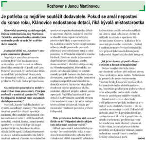 Poslední číslo Klánovického zpravodaje 1-2/2019 bylo věnováno projektu „volnočasového areálu“, na který bývalá klánovická vládní garnitura dostala pětimilionovou dotaci. Po zhlédnutí jednání zastupitelstva na internetu https://www.youtube.com/channel/UCXA4PBpYQyGUauDhpkF2XCA/live a po přečtení Klánovického zpravodaje, kde z nepochopitelného důvodu poslední slovo dostala zase všudypřítomná bývalá místostarostka Martinová, považujeme za nutné korigovat budovatelské nadšení zástupců bývalého vedení Klánovic a vrátit je do reality.