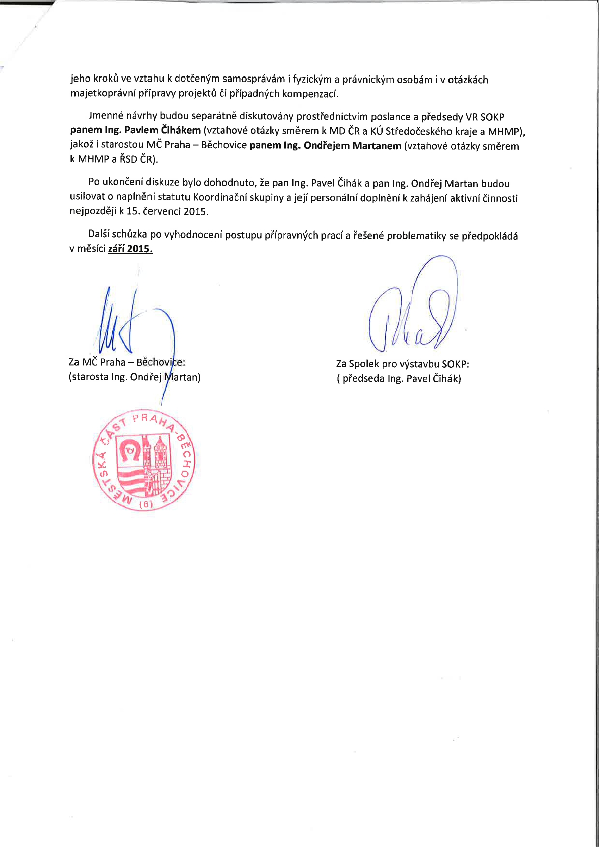 Víte, že existuje Spolek pro výstavbu silničního okruhu kolem Prahy ( dále jen Spolek SOKP)? Předsedou spolku je Pavel Čihák, bývalý šéf krajské údržby silnic Středočeského kraje a spolupracovník bývalého hejtmana Davida Ratha, nyní poslanec za ANO, info HN ZDE. Existenci spolku připomněl zápis z červnového jednání Spolku SOKP s běchovickým starostou Martanem ( ODS), který se objevil na webu “ Silniční okruh kolem Prahy“ dne 29.7.2015. Jednalo se o běchovické křižovatce 511, úzce související s „naší“ přeložkou I/12.