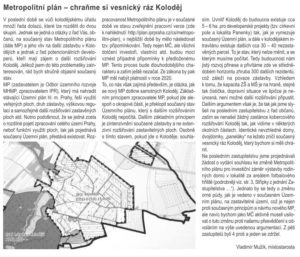 Přehled všeho, co kolodějská radnice dělá a bude dělat, shrnuje starostka Morávková na str. 1 a 2, i úvodník místostarosty Mužíka na str. 1, podrobně pak v článcích uvnitř listu, některé z nich – ty, které se týkají využití území a investic MČ – jsou předmětem našeho výběru:
