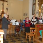 Hudbu doby baroka v profesionálním provedení zprostředkovala naše varhanice a regenschori pí Štěpánka Fáberová a dva milí farníci – bývalí členové České filharmonie – p. Jan Kvapil na housle a p.Vladimír Manoušek na violoncello, kteří pravidelně provozují hudbu na kůru. Na koncert Noci kostelů si pozvali kolegiální posilu – manželé Kimelovi na cembalo a hoboj. Hodinový koncert zakončila schola, neboli farní sbor, s romantickým repertoárem písní o Panně Marii od Mozarta, Griega, Dvořáka a neznámeho autora 18. století.