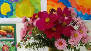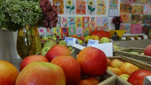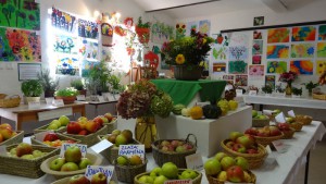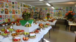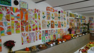 zpívá Jan Skácel v básni Oříšky pro černého papouška. Básně o jablkách, dýních, modravých hroznech, cibuli a dalších půvabných laskominách ze zahrady musejí napadat každého návštěvníka tradiční podzimní výstavy újezdských zahrádkářů. Ta letošní, která se konala od pátku 2.10. do neděle 4.10.2015, získala ale ještě jeden rozměr. Rozměr dětské fantasie a výtvarných dovedností. Český zahrádkářský svaz v celé republice totiž vyhlásil výtvarnou soutěž Rozkvetlá zahrada a Plody našich zahrádek, jíž se v Újezdě zúčastnily mateřské školy a oba stupně Masarykovy základní školy. A děti, pod vedením svých obdivuhodných učitelek, zaplnily svými výtvory každý centimetr zdí Areálu snů na Staroújezdské!