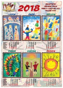Pan Šidák z tiskárny Betis graficky zhotovil z několika kreseb dvanáct koláží, které jsou charakteristické pro jednotlivé měsíce. Děkujeme! Kalendáře budou k dispozici 3.12. na Zvonkovém průvodu v parku, 14.12. na Vánočním zpívání ve dvoře I. stupně školy, 16.12. na vernisáži výstavy Bude zima, bude mráz v Polyfunkčním domě nebo u třídních učitelek a učitelů.