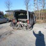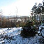 Bylo nádherné pondělí. Po delší době zavládlo bezvětří. A taky svítilo slunce, věc značně motivující. „Podnulová“ teplota byla pro nás vedlejší. A tak jsme vyjeli někam, kde kromě bezvětří a slunce bude i trochu sněhu a nebude nutné tam jet tři hodiny autem. Po poledni jsme se – po vyložení kol na parkovišti mezi Mníškem a Řevnicemi – mohli vydat na cestu. Ta byla nejdřív hladkou cyklostezkou, ale pak se stala střídavě romantickou lesní pěšinou a střídavě klouzačkou mezi zmrzlými vyjetými kolejemi od těžké techniky. Bylo to o ústa i o jiné orgány. Pád byl jen jeden, a to ten můj. Před čtvrtou jsme se vydali na zpáteční cestu. Ta už nevedla hřebenovkou, ale obloukem údolím. Dalo se jet rychleji, ale nakonec jsme se museli dostat na původní výšku asi tříkilometrovým táhlým stoupákem. Poslední půlhodina se konala za tmy. Ta byla docela dobrodružná, poněvadž tmavé ledové plotny ve světle blikaček nebyly rozeznatelné od asfaltu. Těm jsme se nakonec úspěšně vyhnuli, jakožto i kolizi s divokým prasetem, které se při jeho „přeskoku“ přes potemnělou cestu díky bohu o pár metrů vyhnulo nám. K autu jsme při minus pěti dojeli už za úplné tmy. Vlastní jízdou jsme strávili čistého času 2:26 h, ujeli jsme 30,79 km a dosáhli průměrné rychlosti 12,6 km/h. Průměrná rychlost celé doby výletu – se všemi jeho přestávkami – o kilometr lehce přesáhla rychlost chodce. Byla to pohoda.
