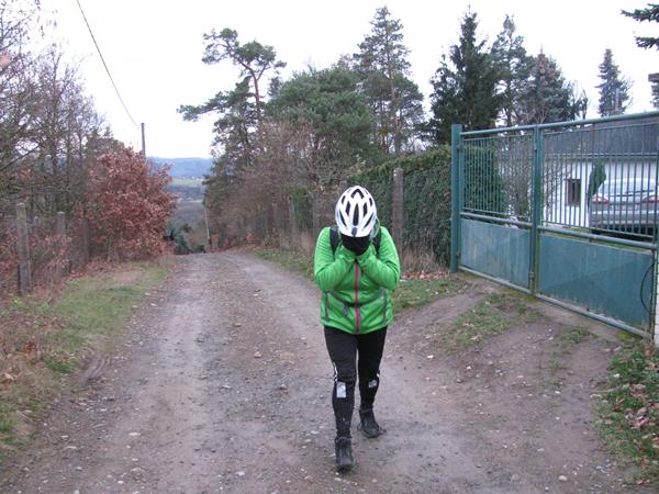 Po deváté hodině jsme se sešli v Klánovicích na vlakovém nádraží a o pár minut si „vyzvedli“ další cyklisty v Újezdě nad Lesy na parkovišti před místním Lidlem. Jet se hned nedalo. Přes půl hodiny jsme museli čekat, až z nebe přestane padat studená voda. Pak jsme vyjeli přes Koloděje kolem židovského hřbitova do Uhříněvsi. Po zelené turistické jsme se Pitkovickou strání dostali na červenou turistickou. Na této „barvě“ jsme pak zůstali až do Psár. Nejdřív jsme prodrncali po navlhlých kořenech pěšinkou podél Botiče, až jsme se dostali k Průhonickému parku, kde se chvíli jelo po zpevněném neklouzavém povrchu. Za Horními Jirčany stezka vedla lesním tichem až do Psár, kde jsme se zastavili v hospodě na oběd v podobě moravského vrabce s bramborovým knedlíkem. Otázka na číšníka, čím se moravský vrabec liší od českého, zůstala nezodpovězena. Jídlo však bylo vynikající a čekali jsme na něj nejvýše 10 minut. Mírně zatíženi plnými žaludky jsme se po modré vydali do údolí Záhořanského Potoka. Stezka byla chvílemi rozblácená, své dělaly i vlhké kořeny, které byly asi nejnebezpečnější. Zpestřením byl bazén s chovnými nutriemi, které se ochotně daly krmit a skoro žraly z ruky. Za obcí Záhořany jsme několikrát museli projet brody Záhořanského Potoka křížícího stezku. Průjezdy mělkým potokem se po druhém opakování staly zábavou. Studená listopadová voda v botách ztratila svou „hrůzu“. Pak se stezka změnila v lesní silničku s řídkým blátem, které pokrylo naše kola. V chatové osadě Libřice, na nějakých 200 m n. m., jsme se rozhodli, že do Prahy pojedeme nikoli z Davle vlakem, jak bylo původně dohodnuto, ale po vlastní ose. To znamenalo jet do Vraného nad Vltavou a překonat nejvyšší bod tohoto úseku na 350 metrech. Oněch 150 m výškového rozdílu byl záhul, část stoupání jsme tlačili. Odměnou byl pohled na Vltavu z vyhlídkového bodu a pak dlouhý sjezd do Vraného nad Vltavou. Odtud jsme klidným listopadovým soumrakem po hladké asfaltové příbřežní cyklotrasy s větrem v zádech mydlili do centra Prahy, kam jsme dojeli již za tmy. Výlet „obnášel“ 60 kilometrů, z toho dobrých dvacet terénem. Průjezdy brodů Záhořanského Potoka byly každopádně nejdobrodružnější částí výletu. Věkové složení skupiny zahrnovalo účastníky od 35 do 70 let. Na konci této podzimní terénní cykloakce jsme toho všichni – bez ohledu na věk – měli skutečně dost.