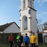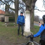 Nádraží v Nymburce samozřejmě nebylo tím bodem, který bychom chtěli bezpodmínečně navštívit. Zůstali jsme „chlapi sobě“. V objevné cyklojízdě jsme pokračovali labskou levobřežní cyklostezkou. Poslední větší zastávka se konala na zřícenině hradu Mydlovar, jehož obrysy bylo v přírodě v období bez sněhu a „bez listí“ konečně možno jakž takž odhadnout. V létě je to pro hustou vegetaci prakticky nemožné a o hradu si nelze udělat představu. Po neskutečně drncavé stezce jsme dohopkovali do Byšiček s nádherným historickým náměstíčkem, které se nechá vidět i fotit.