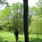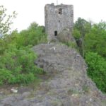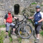 Po výborné kalorické bombě (složené z přineseného i koupeného) jsme se po červené rozhodli dostat se i s bicykly z 312 m na 696 m na Hrad Ralsko a překonat tak „v kuse“ 400 m převýšení. Dvě třetiny této křížové cesty zbrocené potem jsme kola tlačili nebo nesli. Já jsem svého těžkého drátěného oře i s nacpanými brašnami zanechal asi na 600 metrech zamčeného v roští pod hradem. Můj mladší bratr ve zbrani svůj lehounký bicykl – k údivu víkendových běžných pěších turistů – až na hrad (na rameni) skutečně donesl. Já jsem byl rád, že jsem na těch 700 metrů nad mořem donesl své postarší tělo, artrotické klouby, plné břicho, fotoaparát a v neposlední řadě i dalekohled. Tím jsme se pak s uspokojením mohli jako z letadla podívat na Mimoň a také na kavárnu U kaštanů a zažít tak v krátké době dvojí vrchol – jeden kulinářský v podhradí a druhý – cykloturistický – na vrcholu hory Ralska. Tam následovalo focení s kamarádovým bicyklem, který se před hlavní věží tohoto hradu asi nevidí tak často. Já jsem se přitom v duchu modlil, abych ten svůj bicykl v lese na zpáteční cestě vůbec našel.