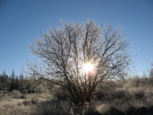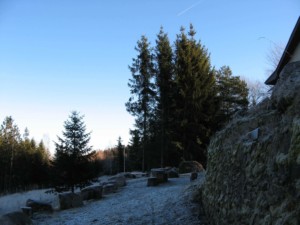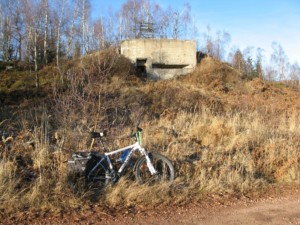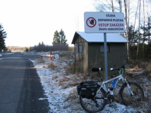 Kolem deváté dopoledne jsme od nádraží Jince vyrazili ke kasárnám, abychom se strážného zeptali, zda se ten den v prostoru střílí. Strejdovsky vyhlížející muž na bráně nás ujistil, že předsilvestrovský pátek se považuje za svátek a nastínil něco v tom smyslu, že za takových okolností v areálu panuje klid. Jako neškodně vyhlížejícím postarším cyklistům nám doporučil vymluvit se na přehlédnutí (jinak ohromných) značek se zákazy vstupu. Dobrá rada nad zlato. Nicméně podobně vyhlížející občan nám předtím ve městě sdělil, že pokuty za nepovolené vniknutí do cvičáku se pohybují někde kolem pěti tisíc korun. Vojenská policie prý může být někdy neúprosná. Se smíšenými pocity jsme v ranním slunci po úzké asfaltce lemované ojíněnými stromy a keři funěli vzhůru do kopců. Cílem bylo najít dopadovou plochu Jordán a shlédnout tam se nalézající bunkr. V lese nebylo, jak u vojáků zvykem, po nějakých směrových značkách ani stopy. Zato značky se zákazem vstupu byly nepřehlédnutelné. Tu se proti nám ze zatáčky vynořilo bílo-zelené auto s nápisem Vojenská policie. Neměli jsme čas se začít bát a „nenápadně“ šlapali dál a čekali, co „empíci“ udělají. Auto kolem nás projelo a zmizelo, což Bořek komentoval slovy „…a máme to posvěcený“. Po chvíli jsme dorazili k bráně a plotu, takže jsme se museli kus vrátit a zkusit to jinudy. O cíleném hledání Jordánu nemohlo být ani řeči, což Bořek okomentoval větou „budeme rádi, když najdeme cestu do civilisace“. Z ničeho nic proti nám šel chlapec s malým psem. Z „řeči jeho těla“ bylo i beze slov jasné, že se nás v první chvíli lekl. My dva jsme byli evidentně to poslední, co by v nepřístupném areálu čekal. Na otázku, kde by se dal vidět nějaký bunkr, nám popsal směr a vyjmenoval několik odboček a cest, které bychom měli sledovat. Po asi půlhodinovém funění do kopce nám bylo jasné, že jsme ho asi přesně nepochopili. Ale pak se – takříkajíc odnikud – z lesa vynořili dva lidé, on a ona. Oba měli na zádech historicky vyhlížející ruksaky potažené kožešinou. Ona měla na hlavě šátek, na těle krátký kabát a na nohou kárované vínové podkolenky, zjevně taky historické. Paní dělala dojem matky z první republiky, která zabloudila v lese. I tito dva „pocestní“ nám detailně vylíčili, kudy bychom se měli ubírat k (nějaké) dopadové ploše s bunkrem. Moc a moc jsme jim děkovali. Oni pak odešli kamsi do lesa mimo cestu. Kamarád to setkání okomentoval větou „dnes jsou tady samí blázni“. Při pohledu na nás dva jsem s ním absolutně souhlasil. A pak jsme bloudili dál. Bylo to furt nahoru a dolů. Až odpoledne jsme konečně narazili na „ohromnou mýtinu“, na jejímž vzdáleném okraji bylo možno vytušit objekt, který se podobal bunkru, byť i ne tomu historickému, o nějž původně šlo. Ale konečně jsme našli nefalšovanou dopadovou plochu! I s jakýms-takýms bunkrem! Ten byl taky to první, co jsme si prohlédli. Bylo bezvětří a poměrně teplo, slunce chvílemi jakoby i hřálo. Panovala dálková viditelnost. Tak jsme tu dopadovou plochu jaksepatří prozkoumali. Strach ze šlápnutí na munici nebyl namístě, pohybovali jsme se jen po vyšlapaných cestičkách nebo po vyjetých kolejích. Já jsem našel vojenskou kuklu s výřezem pro oči. Byla tak zmrzlá, že zastrčit ji do brašen vyžadovalo ji „rozlámat“.