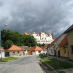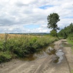 Do Boleslavi to lesem ještě šlo. Ale v polích před Dobrovicemi jsme vjeli do rozbahněného úseku, který jako takový nebyl na první pohled poznat. Kola se obalila tuhým bahnem, neprošla vidlicemi a přestala se otáčet. K jejich zpojízdnění bylo zapotřebí bláto “vyšťourat klacíkem” a modlit se, aby fungovaly brzdy a hlavně přehazovačka. To se nakonec povedlo, mj. i díky větší louži, v níž se dalo bláto na pláštích “zředit”.