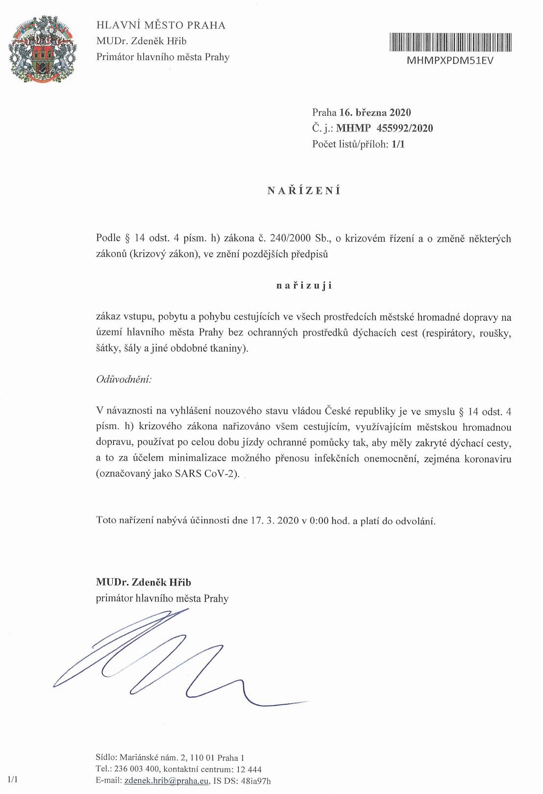 Od 17. března do MHD v Praze vstup pouze se zakrytými ústy a nosem. Prosíme o ohleduplnost