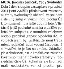 Druhé ohlédnutí za Sloupky zastupitelů v Újezdském zpravodaji v roce 2015