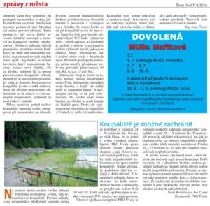 A jako veselejší tečku za – doufejme že dočasně – uzavřeným areálem v Úvalech doporučujeme přehled jiných příležitostí ke koupání v letošním létě v našem nejbližším okolí, které přinesl Újezdský zpravodaj 7-8/2016: