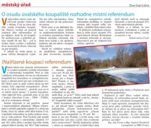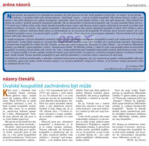Pro přehlednost přetiskujeme diskusi o osudu úvalského koupaliště, chronologicky ze Života Úval 5, 6 a 7-8/2016: