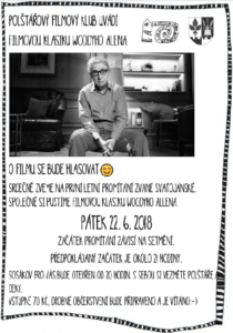 - pátek 22. 6. první letní kino zvané svatojánské s filmem Woodyho Allena, SOSÁKOV, začátek cca ve 21h (po setmění), bar otevřen od 20 hod. Polštáře a deky lépe vzít s sebou, vstup 70 Kč