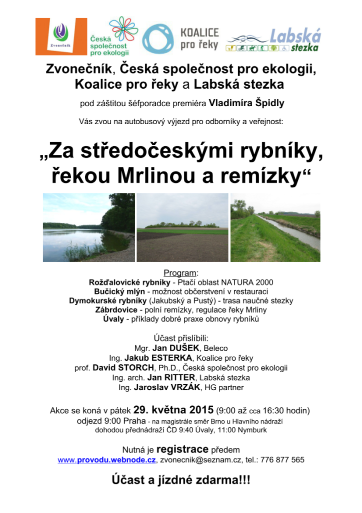 přijměte prosím pozvání na výjezd „Za středočeskými rybníky, řekou Mrlinou a remízky“ pro odborníky a veřejnost.