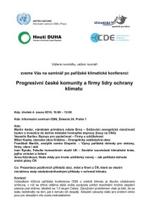Pozvání na konferenci obcí, měst a firem z ČR, které se staly příkladem v ochraně klimatu, ve čtvrtek 4.2.2016