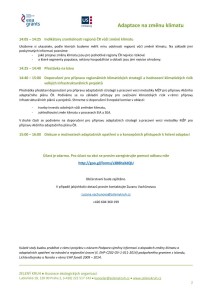Cílem setkání je seznámit účastníky s aktivitami projektu a představit výzkumy, které v jeho průběhu vznikly. Během dne budou představeny výsledky výzkumu, který se zaměřil na zmapování povědomí, vnímaní, postojů a chování české veřejnosti v oblasti změny klimatu. Seznámíme Vás se závěry výzkumu postojů a preferencí české populace vůči adaptačním opatřením a programům a jejich srovnání napříč regiony České republiky. Budou představeny doporučení pro tvorbu adaptačních strategií na regionální úrovni a ukazatele podle kterých lze měřit míru odolnosti regionů vůči změně klimatu.