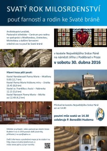 Na Pěší pouť v rámci Svatého roku milosrdenství v sobotu 30.4.2016 zve pořádající Pastorační středisko – Centrum pro rodinu ve spolupráci s Modřanskou, Lhoteckou, Michelskou a dalšími farnostmi. Její hlavní trasa vede od kostela Nanebevzetí Panny Marie v Modřanech přes Lhotku na pražské Vinohrady do kostela Nejsvětějšího Srdce Páně na Náměstí Jiřího z Poděbrad.
