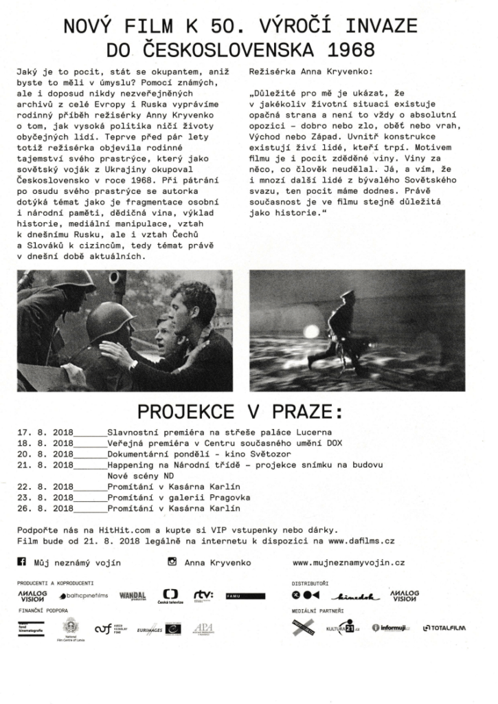 18.8.2018: 18 – 20 h https://www.dox.cz/cs/specialni-programy/muj-neznamy-vojin