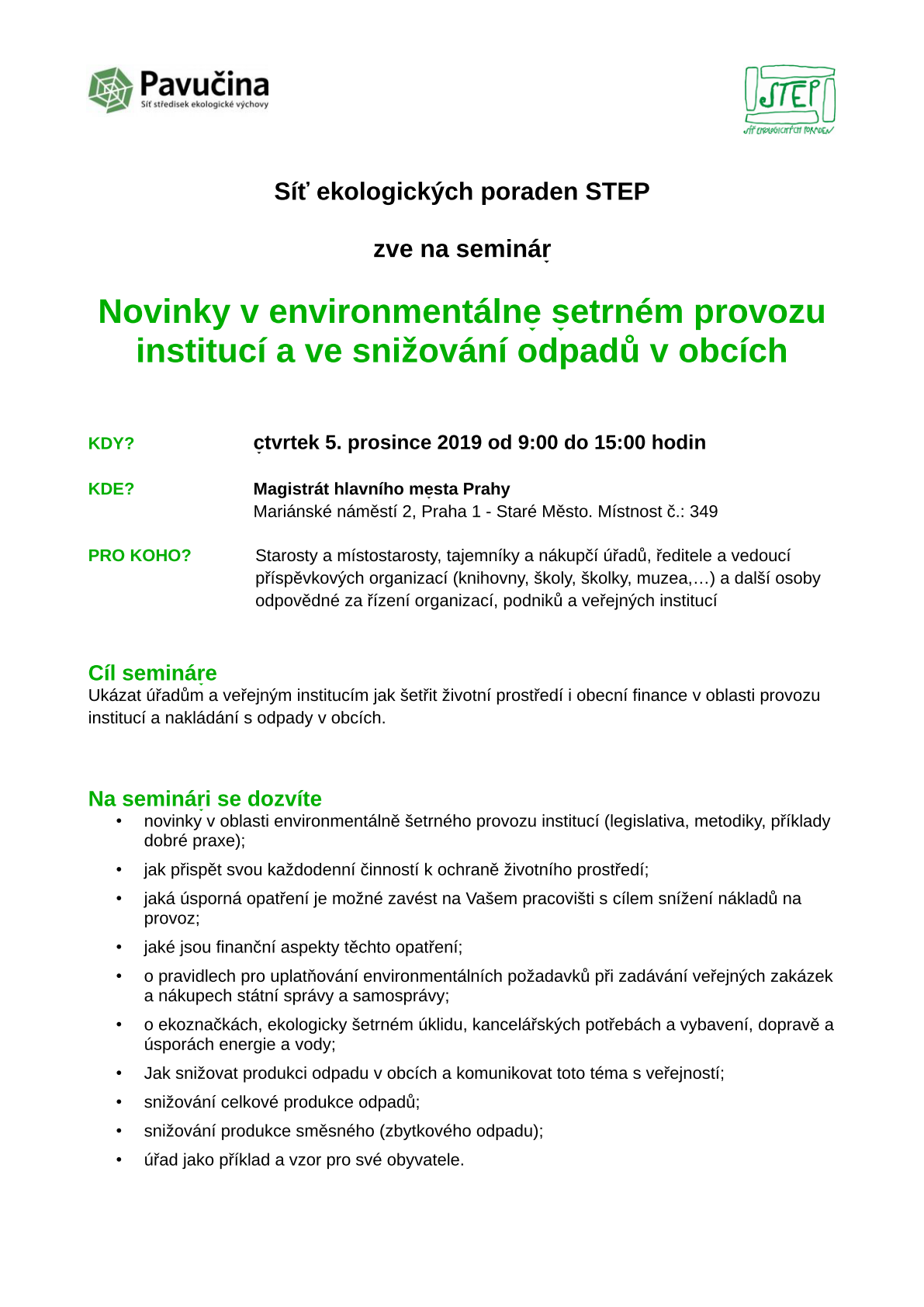 Novinky v environmentálně šetrném provozu institucí a ve snižování odpadů v obcích