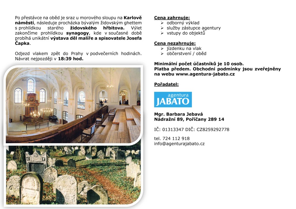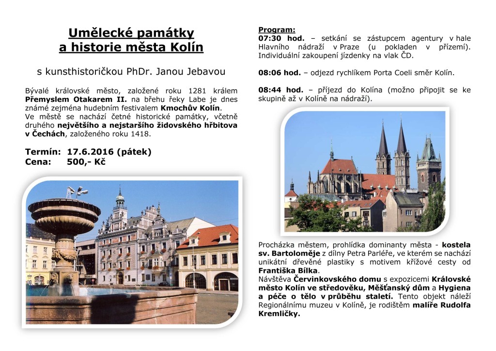 Pozvání na výlet s agenturou JABATO: Kolín v pátek 17.6.2016, rezervace nutná