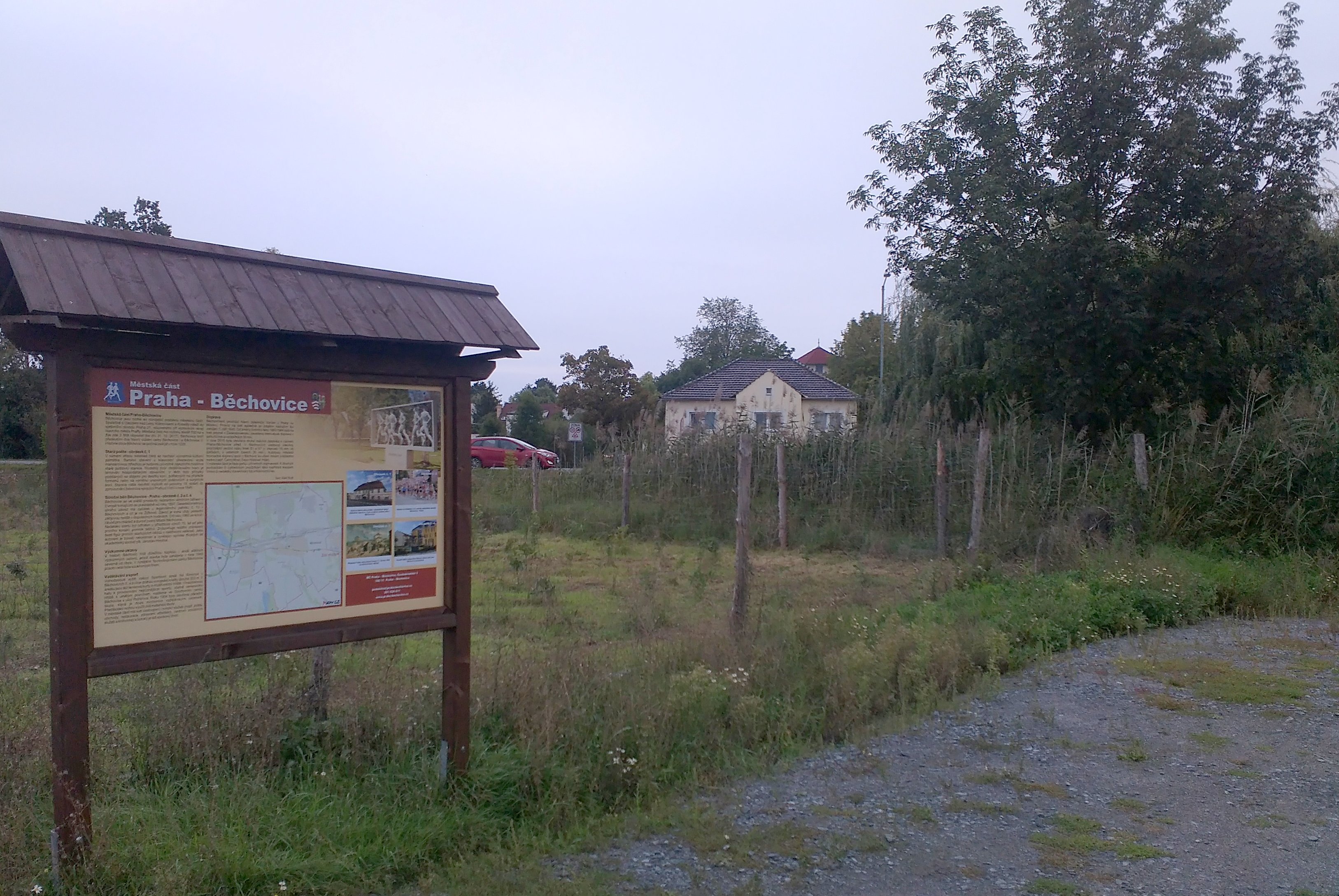 Vstup v Běchovicích ze silnice na Koloděje: