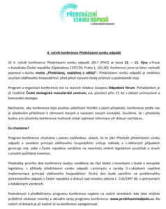 V příloze najdete pozvánku s podrobnostmi ke konferenci a chystanému programu. Předběžný program konference najdete na stránkách www.predchazeniodpadu.cz, kde se lze již zaregistrovat.