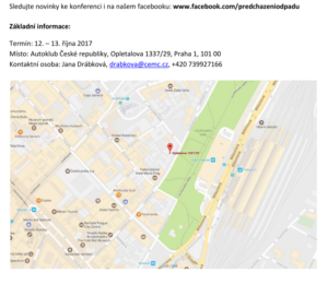 Termín a místo konání: 12. – 13. 10. 2017 v Praze v Autoklubu České republiky, Opletalova 1337/29, 110 00 Praha 1 – Nové Město.