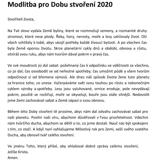 Vybízíme celou křesťanskou rodinu, aby se spojila v tomto mimořádném čase a za pomoci modlitby, rozjímaní a odvážných činů uskutečnila Milostivý rok pro Zemi.