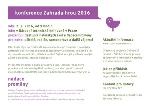Nadace Proměny zve na konferenci Zahrada hrou 2016
